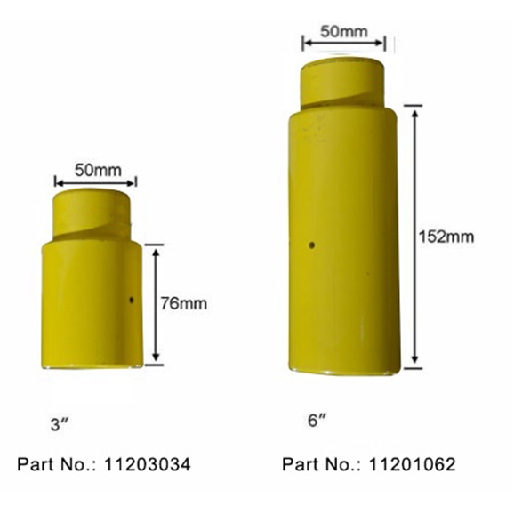Enhance the adaptability of your 2 Post Lift with the E4G 11201062 Lift Pad Extender. Specifically designed to fit lifting arms with a 50mm hole, this 6-inch high stackable truck adaptor allows for easy adjustment of lift pad height to accommodate various chassis types, making it ideal for lifting light trucks. This extension can be used alone or stacked with other extensions to achieve the desired lift height.